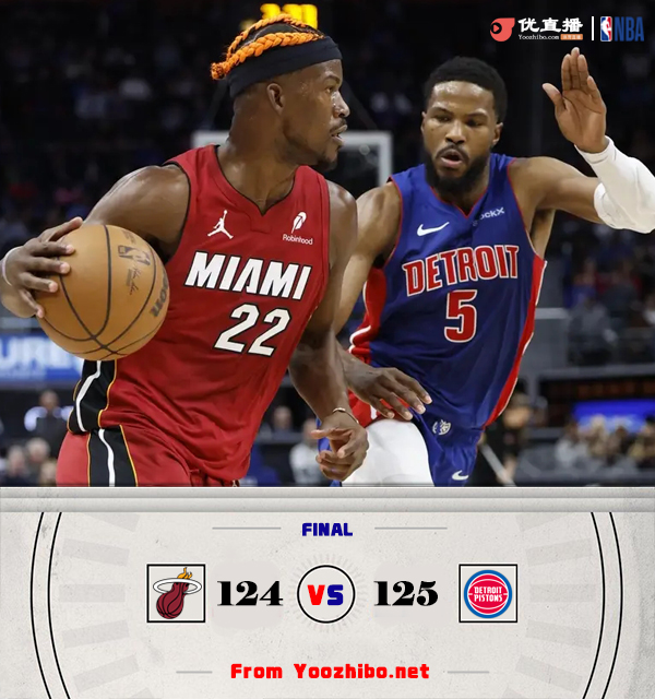 优直播讯北京时间12月17日讯 NBA常规赛,热火客场挑战活塞。热火4连胜高居东部第五,活塞10胜16负排东部第十一。上半场,活塞率先发力,康宁汉姆得分助攻一肩挑,巴特勒连投带罚带队咬住,次节双方继续对攻,活塞外线开火连中三分,乐福和巴特勒联手带队给出回应,半场战罢热火59-63落后活塞。下半场,活塞占得先机打出9-0确立两位数优势,热火苦苦追赶,比斯利延续火力扩大分差,末节活塞稳扎稳打保持优势,热火突然发力,内外开花迫近比分,希罗三分将比赛拖入加时。加时赛,热火不断冲击内线拿分取得领先,哈达威三分3连击强势回应,关键时刻希罗绝杀不中,热火124-125活塞遗憾告负。