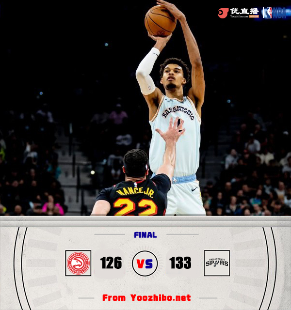 优直播讯 北京时间12月20日讯 NBA常规赛,老鹰对阵马刺,两支球队上场比赛都是遭遇失利。开场后两队就打得十分胶着,马刺连中三分建立领先,文班亚马还投进一记3+1。老鹰轮换阵容在约翰逊和亨特的带领下掀起反补将比分反超,不过主力阵容重新登场后马刺回敬一波9-0稳住阵脚,随后两队陷入拉锯战。特雷-杨多次为队友送出助攻,亨特表现出色频频拿分,第二节尾声老鹰一度掀起攻势取得11分领先。下半场回来马刺先声夺人将比分追上,两队你来我往互不相让,亨特暴力隔扣文班扳平比分,杨绝杀不中两队进入加时。加时赛中文班亚马独得8分帮助