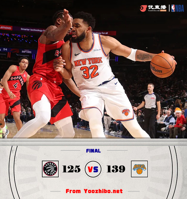 优直播讯北京时间12月24日讯 NBA常规赛,尼克斯今日迎战猛龙,前者近来取得三连胜,后者则是惨遭七连败,此役奎克利和珀尔特尔缺战。比赛上来,两队就打得十分胶着,猛龙打得积极主动完全不落下风,整个第一节分差最大只有四分,次节尼克斯终于打开局面,他们轰出一波15-2的攻势将分差拉开到两位数,单节更是砍下40分,半场结束时猛龙已经落后18分;下半场回来,猛龙进攻有所好转但依旧无法限制对手的攻势,分差一度突破了三十分,比赛到末节已经早早失去悬念,最终尼克斯轻取猛龙,迎来四连胜的同时也送给后者八连败。