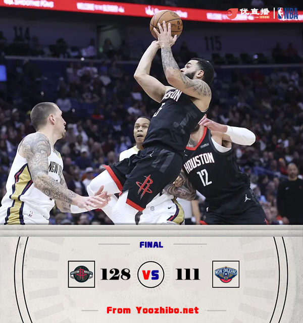 优直播讯北京时间12月27日讯 NBA常规赛今日继续开打,鹈鹕坐镇主场迎战火箭,两支球队一周前有过一次交手,当时火箭主场20分大胜先拔头筹。首节之争火箭早早进入状态,杰伦-格林状态火热9投7中独得16分,火箭首节爆砍39分并在第一节就取得17分的领先;次节火箭状态回落前10分钟里仅得14分,奈何鹈鹕自己抓不住机会,火箭最后时刻回暖连拿8分并稳住18分优势进入下半场。休息归来火箭外线状态火热,格林上来率先两记三分,随后范弗利特续上4记三分,火箭第三节爆砍41分的同时拉开28分的优势早早奠定胜局,这之后双方走马换将开启练兵,惠特摩尔状态火热连连拿分成为最大亮点。最终,火箭轻取鹈鹕完成双杀。