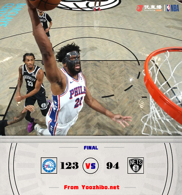 优直播1月5日讯 NBA常规赛,篮网主场迎战76人,篮网目前13胜21负排在东部第12位,76人则是13胜19负排名东部第11。比赛开始,篮网上来3记三分轰出11-0开局,但凯莱布-马丁里突外投止血,76人迅速回应13-2攻击波追平比分,随后恩比德里突外投取分帮助76人领先双位数,次节泰瑞斯-马丁中投终于帮助篮网破荒,双方展开拉锯战,凯莱布-马丁接连取分半场弹无虚发助队半场领先17分。下半场,拉塞尔因伤不会回归,恩比德联手马克西带队打出12-2攻击波一举拉开20分以上领先,随后76人接连外线发炮一度拉开30分以上领先,末节双方逐渐换上替补练兵,76人牢牢掌握20分以上领先,最终76人123-94轻取篮网。