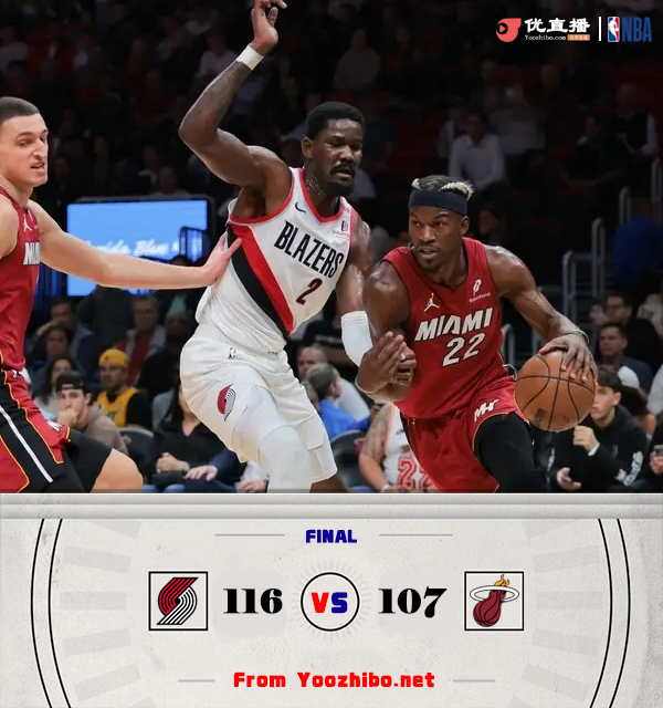 优直播讯 北京时间1月22日讯 NBA常规赛,热火今日迎战开拓者,前者上场比赛战胜马刺,后者则是拿下公牛,此役希罗和克林根等人缺战。比赛上来,两队打得比较胶着,虽然热火此后一度将分差拉开到两位数,但开拓者迅速给出回应咬住比分,双方首节的进攻表现都不错,合计拿下72分,次节热火的进攻遇到了大问题,单节只拿到17分,开拓者趁势完成反超,半场结束时热火反而落后6分;下半场回来,热火的表现依旧没有好转,他们连续打铁了19记三分球,分差也被拉开到二十分以上,末节热火换上替补反而追到个位数,但终究未能实现逆转,最终开拓者力克热火迎来连胜。