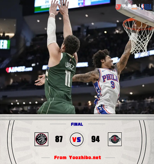 76人(20-32):马克西39分4板5助、恩比德27分12板6助、亚布塞莱18分2板1助、乔治12分5板6助3断、格莱姆斯10分7板5助、乌布雷10分5板1助3断、贾里德-巴特勒7分2板1助、爱德华兹4分4板1助、洛瑞1板1助、埃里克-戈登1助。
