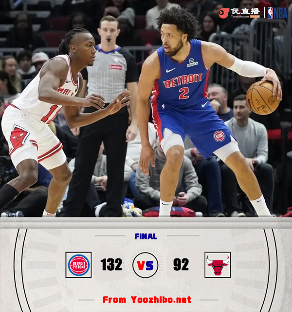 优直播2月12日讯 NBA常规赛,活塞客场挑战公牛。活塞27胜26负东部第6,公牛22胜31负东部第10。上半场,活塞反客为主率先发力,多点开花很快取得两位数领先,次节公牛依旧低迷,打铁失误不断,活塞火力全开,攻防两端碾压对手一度将优势扩大到45分,半场战罢活塞71-29领先公牛。下半场,公牛进攻回暖,双方围绕40分的分差展开拉锯战,末节成为垃圾时间,最终,活塞132-92狂胜公牛40分。