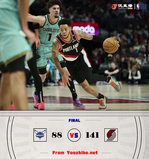 优直播讯 北京时间2月23日讯 NBA常规赛,黄蜂对阵开拓者,黄蜂上场输给掘金,开拓者最近遭遇4连败,本场比赛艾顿和罗威都缺阵。开场没多久开拓者就在阿夫迪亚的带领下打出一波13-0的攻势建立领先,虽然黄蜂两记三分止血,但开拓者再度打出冲击力又将比分拉开,开拓者的外线也逐渐找到手感连中三分。第二节黄蜂进攻依旧打得不理想,鲍尔手感不佳,反观西蒙斯状态火热单节轰下15分帮助开拓者继续扩大优势,半场过后开拓者领先33分。易边再战,鲍尔的表现依旧不佳,开拓者则是全面开花将分差继续拉大,比赛彻底失去悬念,末节成为两队练兵时间,最终开拓者141-88血洗黄蜂结束4连败,黄蜂遭遇2连败了。