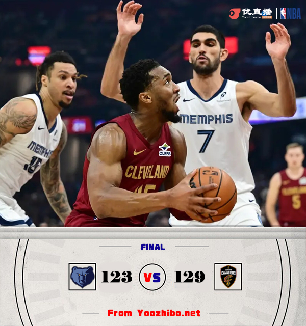 优直播讯北京时间2月24日讯 NBA常规赛激战正酣,骑士主场迎战灰熊,骑士目前46胜10负6连胜领跑全联盟,灰熊37胜19负位列西部第二。首节一上来莫兰特早早开张连续取分,米切尔不遑多让里突外投强势回应,莫布里连续杀伤内线,末段骑士一波8-0稍稍拉开比分,首节结束时骑士领先4分,次节回来,灰熊多点开花紧咬比分,米切尔延续火力予取予求,双方你来我往杀得难解难分,半场战罢,骑士依然领先6分。易边再战后韦尔斯飚中三分一度帮助灰熊反超,但骑士内外结合稳住局势,三节结束后骑士保持5分优势,末节决战,骑士将分差拉开到两位数,灰熊连投带罚拉回悬念,但小贾伦关键两罚不中后灰熊翻盘未果,骑士连中罚球锁定胜局,最终骑士129-123力克对手豪取7连胜。