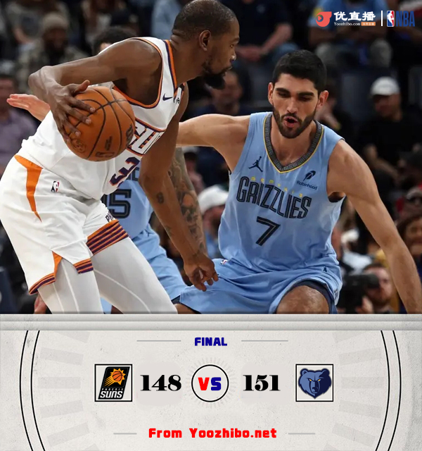 优直播讯 北京时间2月26日讯 NBA常规赛迎来西部球队直接对话,灰熊主场迎战太阳,太阳近期2胜8负,目前27胜30负仅列西部第11位,灰熊37胜20负排在西部第三。此役一上来双方迅速找到节奏陷入僵持,杜兰特连造杀伤接连取分,波尔扮演奇兵续上火力,小贾伦-杰克逊连投带罚及时回应,首节结束时太阳领先3分,次节回来,两队你来我往继续鏖战,布克和比尔轮番发力,半场战罢,太阳保持4分优势。短暂休整后双方延续进攻手感,比尔连投带传盘活全队,两队外线火热对飚,三节结束后太阳依然领先2分,末节决战,小贾伦-杰克逊六犯离场,双方鏖战至最后时刻,莫兰特高难度三分+抛投连拿5分,杜兰特绝杀未果后进入加时,加时赛太阳一度占优,但韦尔斯突然爆发连续取分,灰熊一波7-2奠定胜局,杜兰特绝平三分不中,最终灰熊151-148逆转对手。