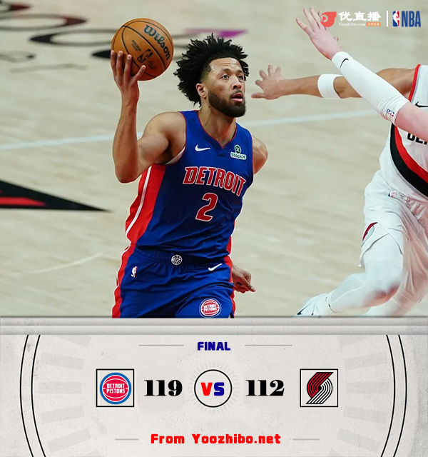 优直播讯北京时间3月10日讯 NBA常规赛火热进行,两连败的开拓者主场迎战活塞,活塞近期同样遭遇连败,35胜29负暂列东部第6位,开拓者28胜36负排在西部第12位。首节开打后活塞反客为主率先占优,康宁汉姆连投带罚不断取分,小哈达威外线续上火力,格兰特手感滚烫及时回应,首节结束时活塞领先3分,次节回来,两队比分继续紧咬,但中段活塞再度发力,半场战罢,活塞继续领先6分。易边再战后开拓者进攻陷入停滞,活塞稳扎稳打牢牢占优,三节结束后活塞保持11分优势,末节上来,西蒙斯率队迫近比分,但决胜时刻开拓者连续错失扳平三分,康宁汉姆连中终结悬念,最终活塞119-112力克对手终结连败,同时送给开拓者三连败。