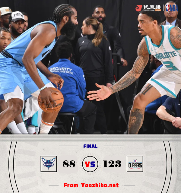 优直播讯 北京时间3月17日NBA常规赛,快船主场迎战黄蜂,快船2连胜后37胜30负排在西部第8位,黄蜂则是17胜49负排在东部第14位。本场比赛是因洛杉矶山火延期至今日;鲍威尔再次迎来复出。比赛开始,哈登率先打出状态连砍7分,但三球和马威接连内线强攻回应,随后哈登里突外投又是连砍6分带队领先双位数,次节双方命中率都有下降,小卡和巴图姆接连三分命中,哈登也有三罚,快船轰出16-4攻击波一举拉开20分以上领先,半场快船领先24分。下半场,小卡开始发力,里突外投单节得分上双,哈登继续状态不错,快船顺势拉开30分以上领先,末节双方拉锯战,快船留鲍威尔在场上带替补找状态,快船一度拉开近40分的领先,最终快船123-88大胜黄蜂,拿到3连胜。