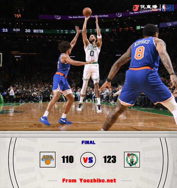 优直播10月18日讯 CBA季前赛尼克斯对阵凯尔特人,本场比赛尼克斯的布伦森、兰德尔均缺阵,凯尔特人则是主力尽出。开场后两队手感都十分火热,在三分线外对飚三分,在首节后半段塔图姆火力全开接连砍分带领凯尔特人建立起两位数优势。第二节塔图姆依旧状态神勇,双方在外线依旧保持着不错手感,不过凯尔特人攻势更胜一筹继续将分差拉大,他们一度领先到25分,尼克斯在半场结束前连中三分略微将分差缩小。易边再战格莱姆斯三分线外依旧弹无虚发,在他的带领下尼克斯一度将分差缩小到个位数,随后三巨头联手发挥回敬一波9-0稳住阵脚。最后一节凯尔特人上来继续连中三分,他们发挥稳定将领先优势保持到最后,最终凯尔特人轻松拿下尼克斯。