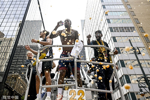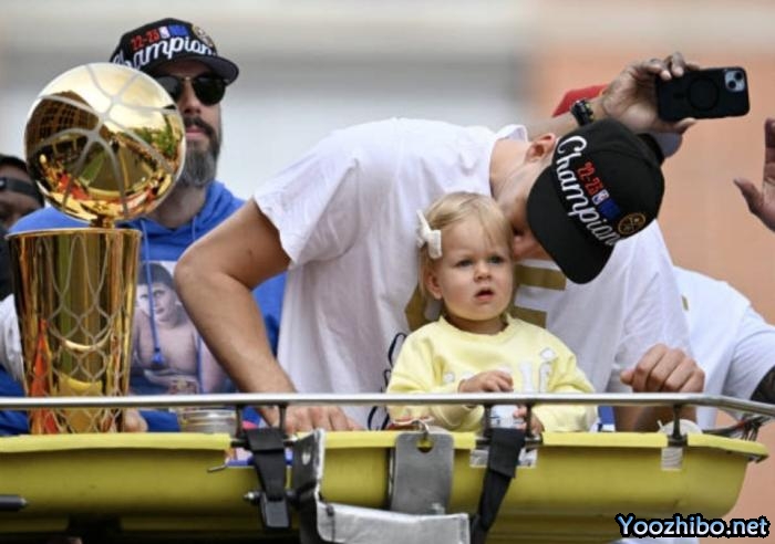 约基奇出现在游行的车辆上,面前的FMVP奖杯、总冠军奖杯和女儿一字排开,他和穆雷在同一台车上,自然也受到最大的关注。人群们向他欢呼,他也教女儿如何回应,相当有爱。