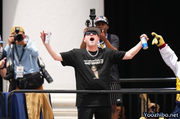 掘金主帅马龙一度冲上全美热搜第一,因为他在夺冠游行中太有话题度了。