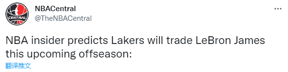 NBA内部人士预测湖人将在休赛期交易詹姆斯