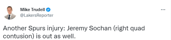 马刺连伤两大主力:主力中锋和索汉伤退 双双因伤退出与湖人比赛
