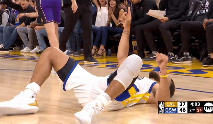 第二节,勇士替补阵容仍占上风,8分18秒库里回来,库里连续空切杀到禁区得分,打成2+1后倒地伸出手指庆祝,强突沃克上篮得分,库里三分依旧不开张,但库中锋单节6投4中独砍12分,勇士死亡五小更是一度领先湖人12分,半场打完,勇士59-52领先7分。