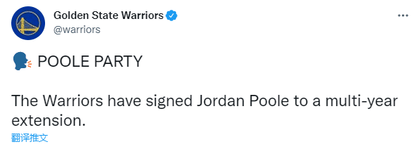 来源:优直播10-17 12:02优直播10月17日,勇士官方宣布续约普尔,勇士官推晒照庆祝并且配文写道:泳池派对,勇士已经和乔丹-普尔签下一份多年续约合同;根据之前的报道,双方签下4年1.4亿美元的大合同;签约后普尔发声并且首次回应冲突事件,恭喜维金斯续约。