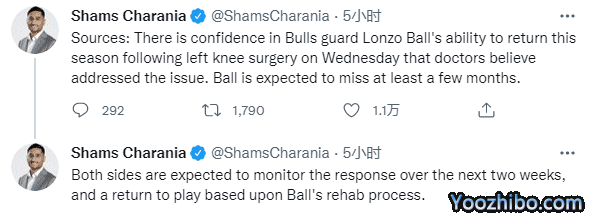 来源:优直播09-30 10:06优直播09月30日,据名记Shams报道,公牛队后卫郎佐-鲍尔已在本周四成功接受了膝盖手术,预计缺席几个月。