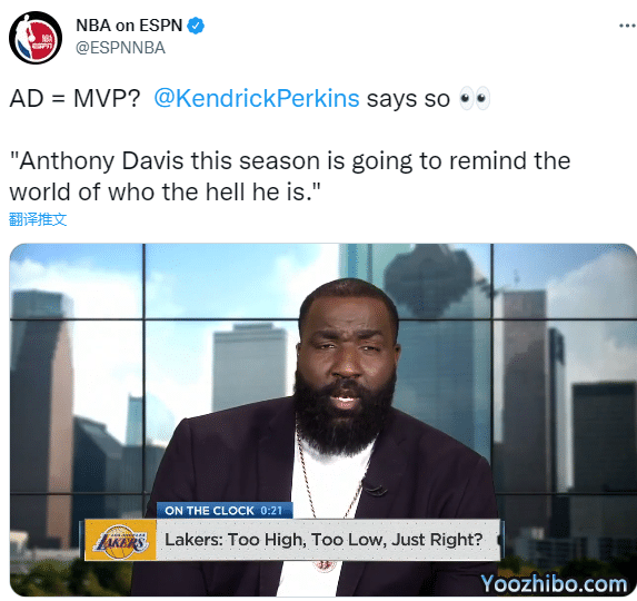 对于新赛季,名嘴帕金斯认为湖人能够重返季后赛,因为他认为浓眉新赛季会成为MVP的领跑者。