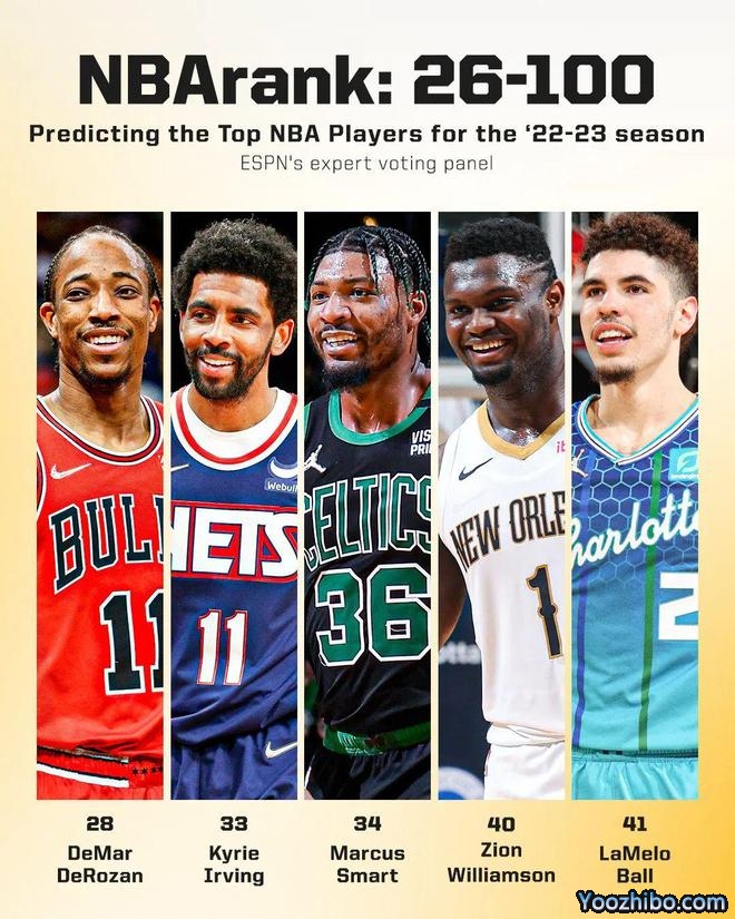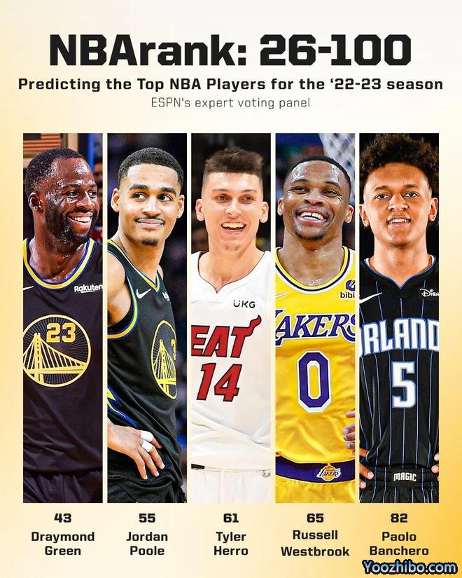 来源:优直播09-24 22:14优直播09月24日著名NBA媒体ESPN评出了一年一度的NBA新赛季百大球员,今日放出了100-26的球员,具体排名如下: