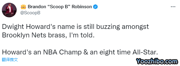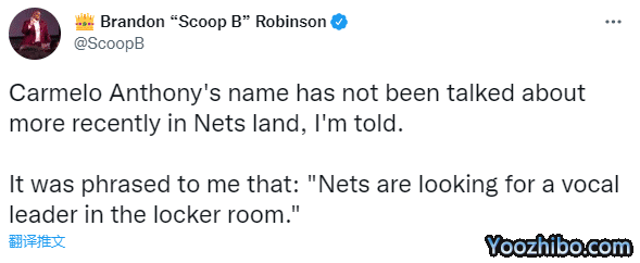据美记者Brandon Bobinson报道,我被告知,霍华德的名字仍旧在篮网高管之间被讨论;该记者还表示,最近篮网管理层没有谈论过安东尼,据说篮网正在寻找一位在更衣室中有声望的领袖。