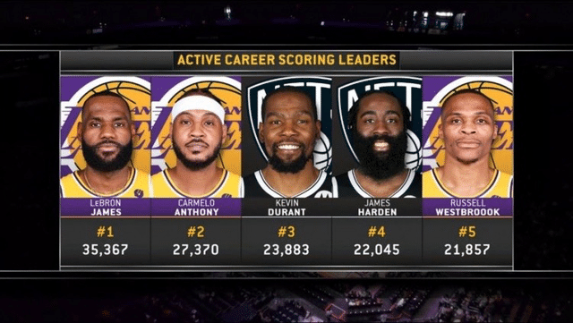 来源:优直播10-07 19:59优直播讯 距离新赛季的大幕拉开越来越近,最近美国媒体统计了新赛季得分榜排名前五的球员,令人意外的是,前五球员基本上都集中在湖人和篮网这两支球队当中,那么现役得分榜历史前五的巨星都有谁呢?我们一起来看一下吧!