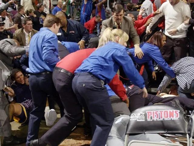 不过阿泰斯特显然惹错人了,正所谓工人有力量,活塞可是汽车之城,这些汽车工人怎么可能认怂,阿泰斯特被围住了,此时的斯蒂芬杰克逊一开始是打算上前劝架,可是当杰克逊靠近的时候,球迷布莱恩特对着杰克逊扔了一把椅子,并且对杰克逊大喊:你的孩子是兔崽子,你妈生了你就应该进监狱。