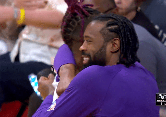 湖人和篮网季前赛对决,詹姆斯、威少、安东尼以及杜兰特、哈登和欧文都高挂免战牌;除了霍华德之外,湖人另外两大中锋小乔丹面对老东家,首发上场17分钟拿到7分4篮板3盖帽,吃饼扣篮点燃全场;浓眉打了11分钟拿到6分1篮板1助攻1抢断。
