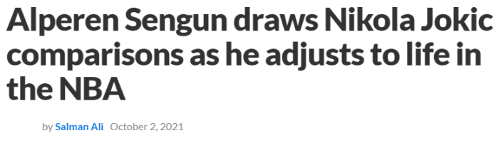 约基奇是新科MVP,新赛季还是MVP的热门之一,而且约基奇确实是现代篮球里的大个子中锋的标杆,拥有2米13的身高,129公斤的体重,胖起来时候就是球场上行走中的五花肉,约基奇是一个全能的中锋,萨古能否成为约基奇是一个疑问,但身高和体型都是19岁的萨古的弱项,也没有人确定增重的萨古能否保持当前的灵活性。