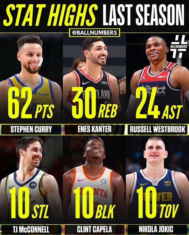 来源:优直播09-07 09:50优直播9月07日讯,美媒ballnumbers更新Ins,晒出上赛季各项数据的单场纪录,库里得分王、威少助攻王领衔上榜,不过上赛季MVP约基奇扎心了。