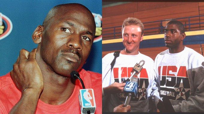 AhmadRashad透露,在1992年巴塞罗那奥运会期间,尤因、巴克利、伯德、乔丹和魔术师在一间屋子里聊天,谈到谁有最好的球队时,伯德告诉尤因和巴克利不要说话,因为你们没有总冠军;谈到谁是最好的球员时,魔术师和乔丹有些争执,然后乔丹急了。