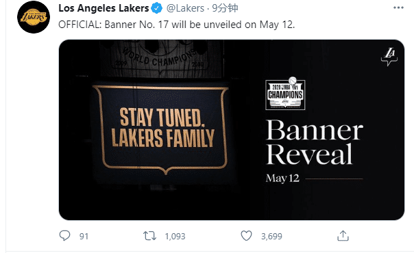 官宣!湖人升冠军旗帜日期确定,对阵火箭升旗,球迷:还好哈登跑得快