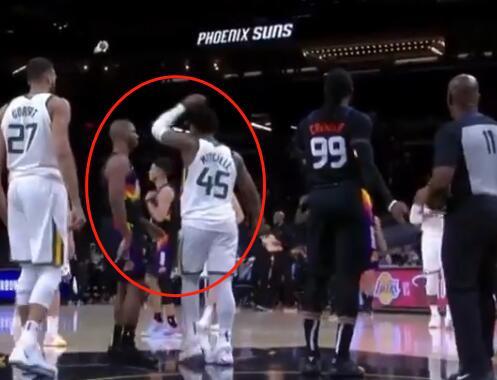 比赛来到第四节最后时刻,爵士队落后三分,太阳队这边拿出了点球战术,将爵士核心米切尔送上了罚球线。或许是体力消耗太大,“大心脏”的米切尔竟然在关键时刻掉链子了,他罚丢了第一个罚球。