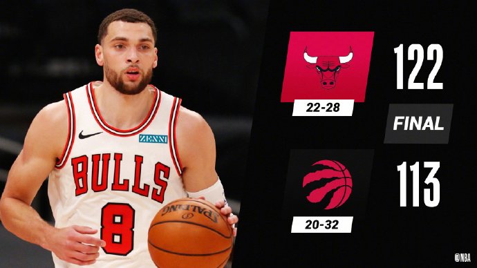 公牛122-113轻取猛龙 拉文22+13 布歇38+19
