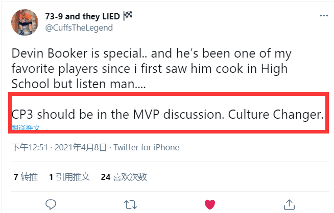 “保罗应该进入MVP的讨论中,他改变了太阳的球队文化!”