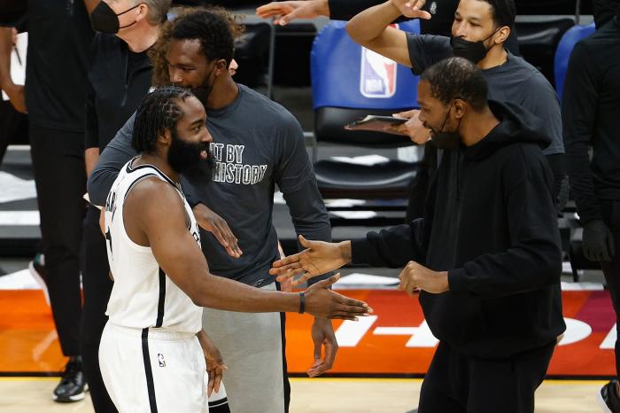 篮网已经官宣杜兰特伤愈复出,此前杜兰特因腿筋拉伤连续缺席23场比赛,上一场打球已是2月13日,时隔两个月终于复出;不过在杜兰特伤停期间,哈登和欧文带队拿到19胜4负的出色战绩;如今哈登伤了,杜兰特归位,杜欧继续带队冲击东部第一,这下哈登好好养伤吧!