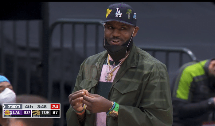 此前湖人客场击败猛龙,詹姆斯不仅再次随队出征客场,而且已经脱掉保护靴;虽然因伤休战,但场边的詹姆斯很积极——不满判罚时,詹姆斯为队友找裁判理论;塔克出现失误时,詹姆斯亲自指点小弟;湖人早早锁定胜局时,詹姆斯满脸笑容,和浓眉闲聊。