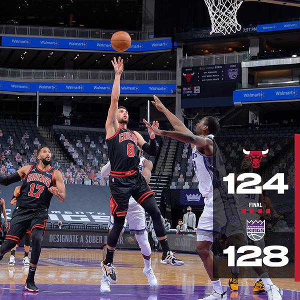 末节,比赛早早进入到白热化阶段,在比赛还剩1分34秒时,拉文罚中两球,公牛将比分追至119-120。之后霍姆斯投三分不中,结束了个人本场10投全中的纪录,拉文投三分也未能命中,但是在比赛还剩38.3秒时,希尔德投中三分并造成坦普尔犯规,他加罚命中后,国王取得124-119的领先。暂停后怀特上篮得手,不过在比赛还剩11.7秒时,哈利伯顿也命中三分,国王127-121还领先7分。比赛至此已经失去悬念,最终国王以击败128-124击败公牛,结束了之前的三连败。