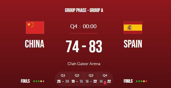西班牙男篮(3-0):佩雷兹24分6板2断,米勒9分10板7助2帽,维拉尔10分3板2助,罗德里格斯9分,加鲁巴8分2断,兰加里塔9分2板2助,戈麦斯4分2板。
