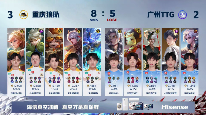 优直播讯 2024年8月18日KPL夏季赛常规赛中,重庆狼队与广州TTG的比赛打得十分激烈,最终狼队以3-2的比分战胜了TTG。