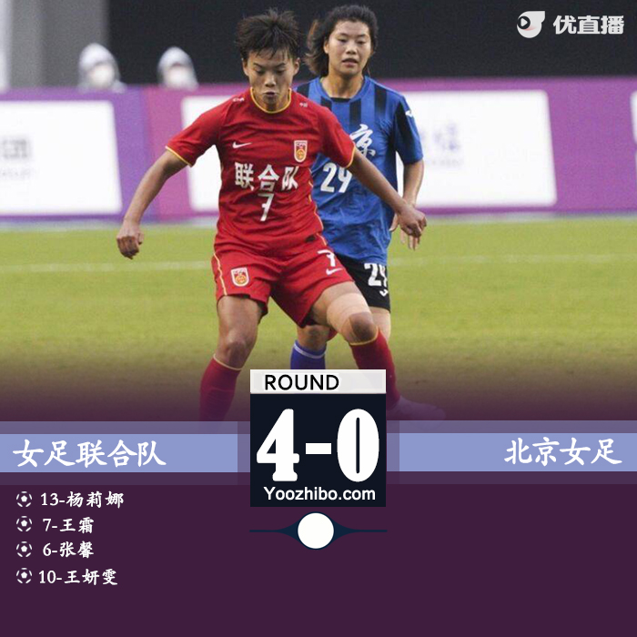 优直播9月23日讯 北京时间9月23日16:00,全运会女足成年组半决赛,奥运联合队对阵北京队。上半场,张馨助攻杨莉娜头球建功,王霜随后角球制造对手乌龙;下半场,王霜助攻张馨破门锁定胜局,王妍雯中框后推射锦上添花。最终,奥运联合队4-0击败北京队进入全运会女足决赛,将与上海和陕西的胜者争夺金牌。