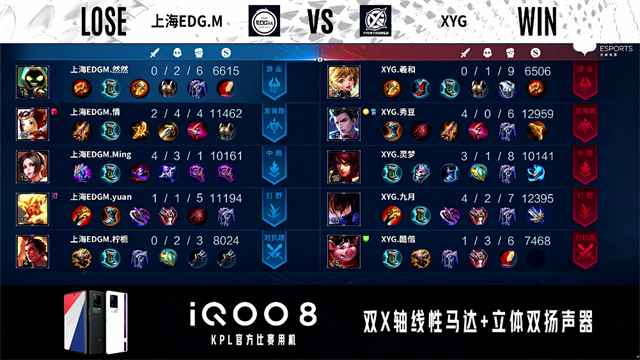 优直播讯 9月24日2021年KPL秋季赛常规赛第一周第三日第三场,由上海EDG.M对阵XYG,以下是本场比赛快讯。