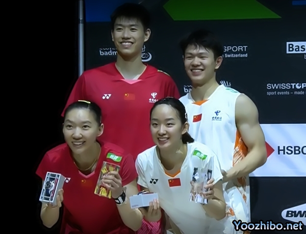 优直播讯 北京时间03月24日,2025瑞士羽毛球公开赛混双决赛冯彦哲/魏雅欣vs朱一珺/张驰,冯彦哲/魏雅欣以2-0击败队友朱一珺/张驰,获得冠军!比分为21-13、21-15。