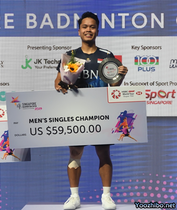 优直播讯北京时间06月11日,2023新加坡羽毛球公开赛男单决赛安东森vs金廷,印度尼西亚选手金廷以21-16、21-13击败安东森,金廷成功卫冕新加坡赛男单冠军,也是本赛季第二冠!
