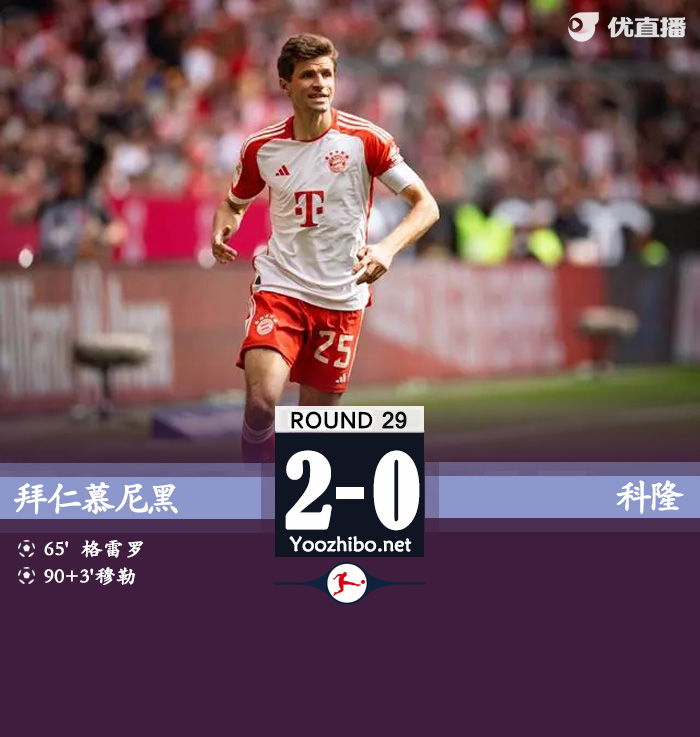 优直播讯:北京时间4月13日在德甲联赛第29轮的比赛中,拜仁慕尼黑主场迎战科隆。格雷罗在比赛中攻入一球,最终拜仁慕尼黑以2-0战胜科隆。