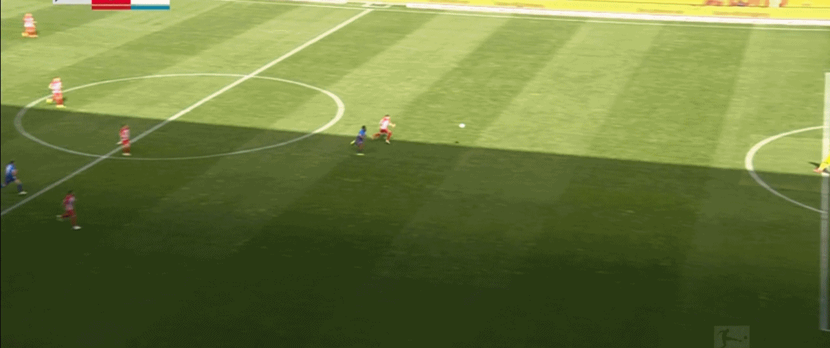 第1分钟,奥蓬达右路横传,海达拉抢点破门!莱比锡1-0