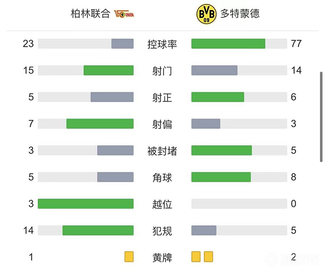 全场比赛结束,柏林联合2-0多特蒙德!