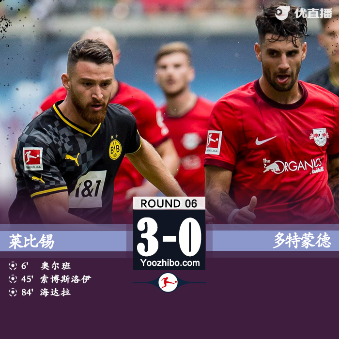 来源:优直播09-11 01:21 优直播讯:北京时间9月10日,德甲第6轮比赛,RB莱比锡主场对阵多特蒙德,这是前多特主帅罗泽执教莱比锡的首秀。上半场,刚开场奥尔班就在角球机会中头球破门,随后主场做战的莱比锡多次制造进攻机会,维尔纳也是因为越位错失一次单刀,索博斯洛伊世界波;下半场,双方都没有太多好机会,直到最后时刻海达拉破门,最终莱比锡3-0多特。