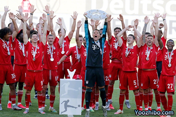 来源:优直播06-29 20:32 北京时间06月27日结束的德甲第34轮的比赛中,拜仁以积分82分排名第一,比第二名的多特蒙德高出13分,拜仁获得2019-2020德国甲级联赛冠军,而这一个德甲冠军也是拜仁历史上第29个德甲冠军。同时拜仁也完成了德甲八连冠,上一次德甲有拜仁以外的球队夺冠还是多特。排名第18的帕德伯恩跟排名第17的杜塞尔多夫下个赛季降级为乙级联赛,德乙排名第一,第二的比勒菲尔德跟斯图加特直接晋级下赛季的德甲联赛。德甲排名第16的云达不莱梅将跟德乙排名第三的海登海姆进行附加赛,胜者进入下赛季甲级联赛,败者进入乙级联赛。