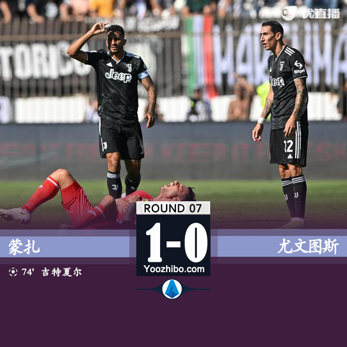 优直播讯北京时间9月18日21:00,意甲第7轮,尤文图斯客场挑战升班马蒙扎。上半场,蒙扎连续威胁尤文球门,尤文半场仅有一次射正,迪玛利亚报复性肘击染红;下半场,尤文后防集体迷失,吉特夏尔铲射破门!全场比赛结束,蒙扎1-0尤文图斯拿到本赛季联赛首胜!