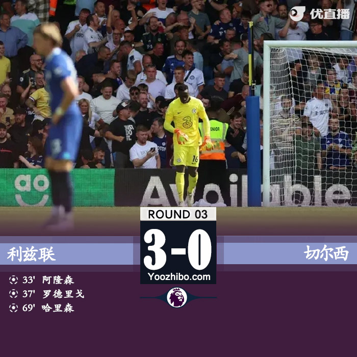 优直播讯北京时间8月21日21:00,新赛季英超第3轮,切尔西对阵利兹联。上半场,斯特林打入一球但越位在先,门迪低级失误送礼,阿伦森破门,罗德里戈头球再下一城;下半场,切尔西创造几次机会但未能取得进球,利兹联则由哈里森建功,库利巴利最后时刻染红。最终,切尔西客场0-3不敌利兹联。